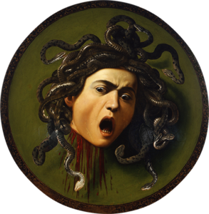 ‘Tis the tempestuous loveliness of terror; For from the serpents gleams a brazen glare Kindled by that inextricable error, Which makes a thrilling vapour of the air Become aand ever-shifting mirror Of all the beauty and the terror there— A woman’s countenance, with serpent-locks, Gazing in death on Heaven from those wet rocks. –Percy Bysshe Shelley